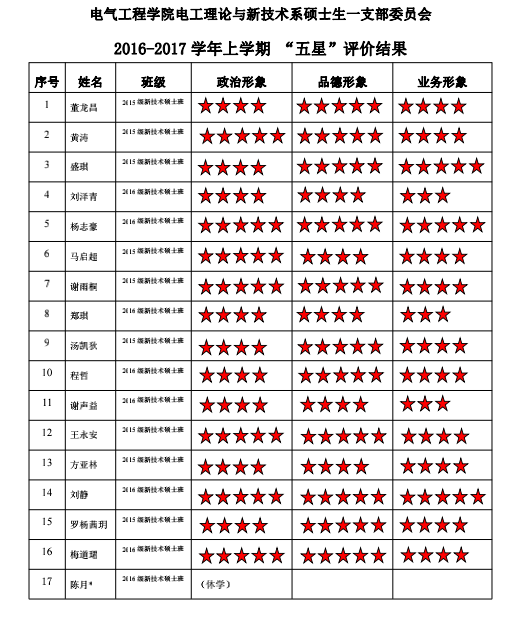 中共无码av 电力系统及其自动化系硕士生一支部2017-2018学年 “五星”评价结果