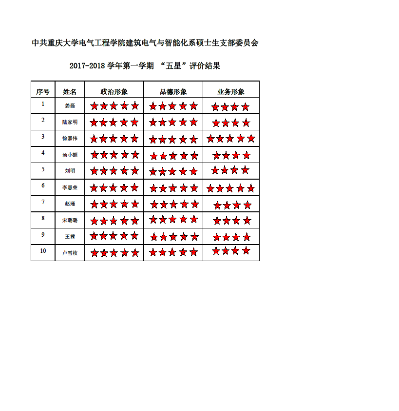 中共无码av 电机与电器系硕士生支部委员会2017-2018学年第一学期 “五星”评价结果