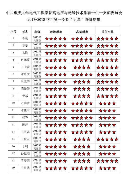 中共无码av 电力电子与电气传动硕士生一支部委员会2017-2018学年 “五星”评价结果