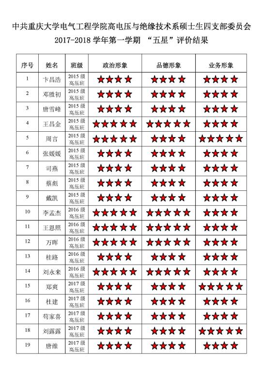 中共无码av 高电压与绝缘技术系硕士生四支部委员会 2017-2018学年第一学期“五星”评价结果