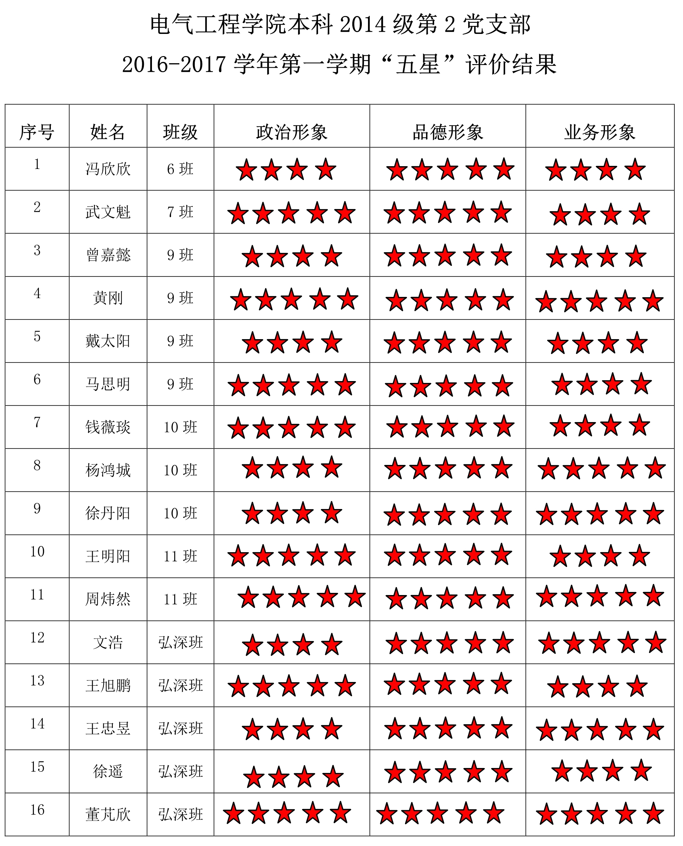 无码av 本科2014级第2党支部2016-2017学年第一学期“五星”评价结果