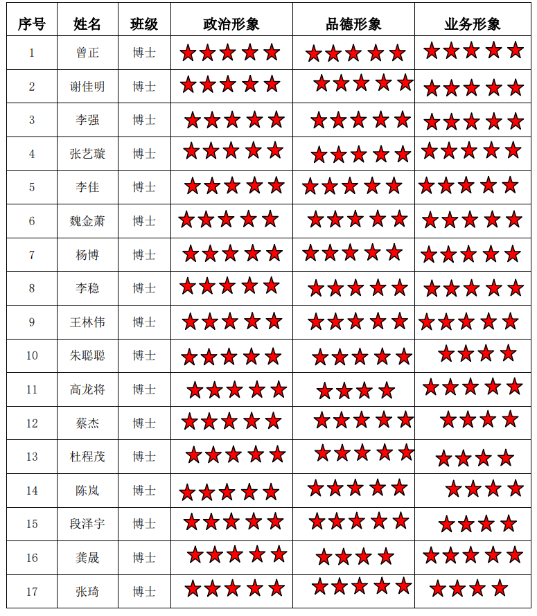 无码av 博士生一支部 2022-2023学年第二学期“五星”评价结果