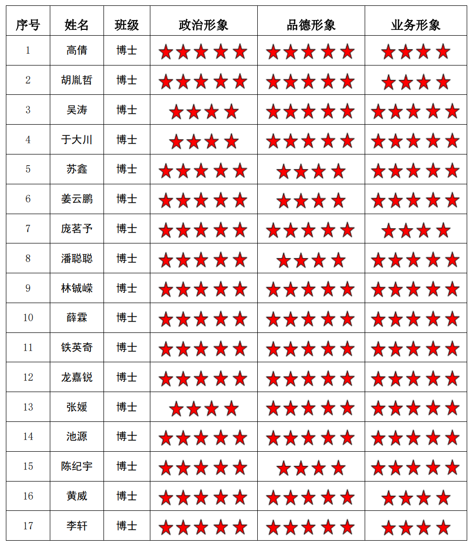 无码av 博士生一支部 2022-2023学年第二学期“五星”评价结果