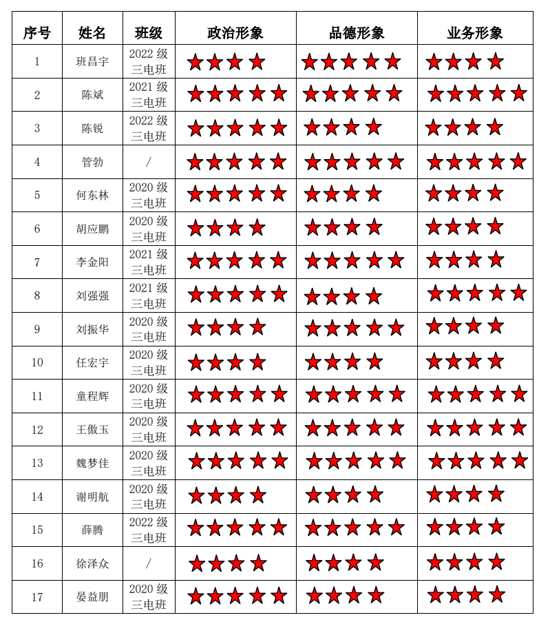 无码av 电力电子与电力传动硕士生二支部 2022-2023学年第二学期“五星”评价结果