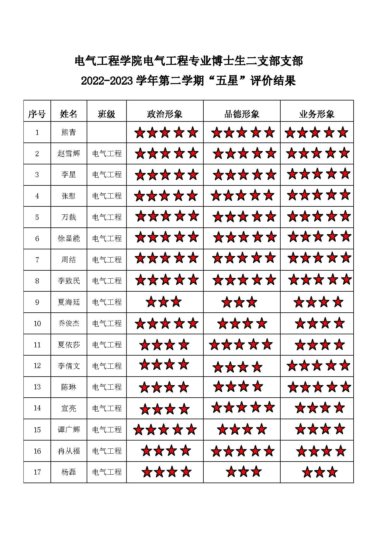 无码av 博士二支部 2022-2023学年第二学期“五星”评价结果