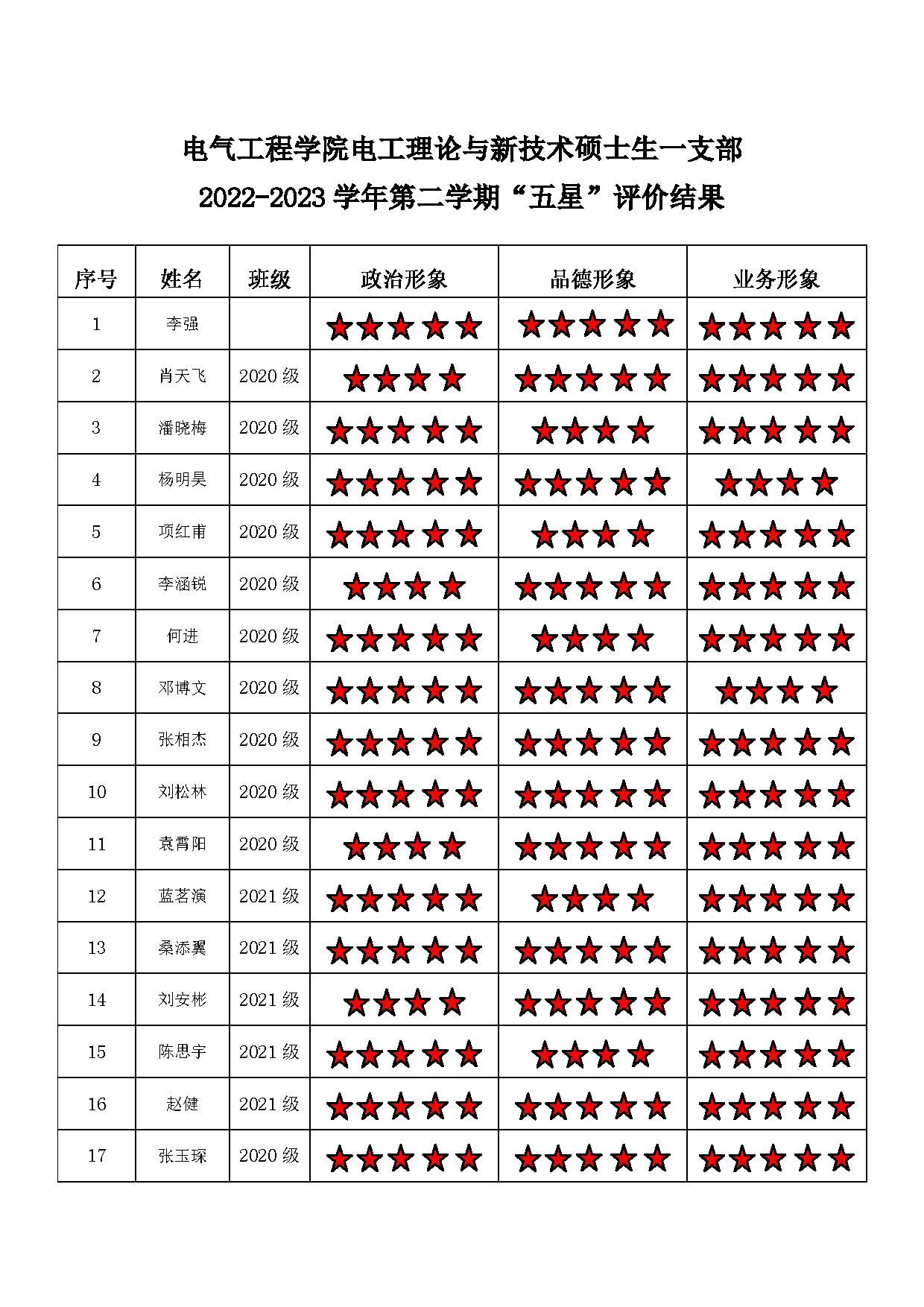 无码av 电工二支部 2022-2023学年第二学期“五星”评价结果