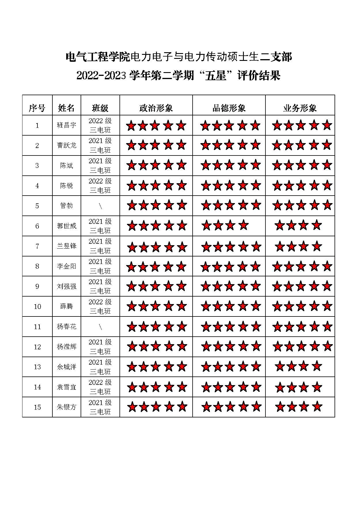 无码av 电力电子二支部 2022-2023学年第二学期“五星”评价结果