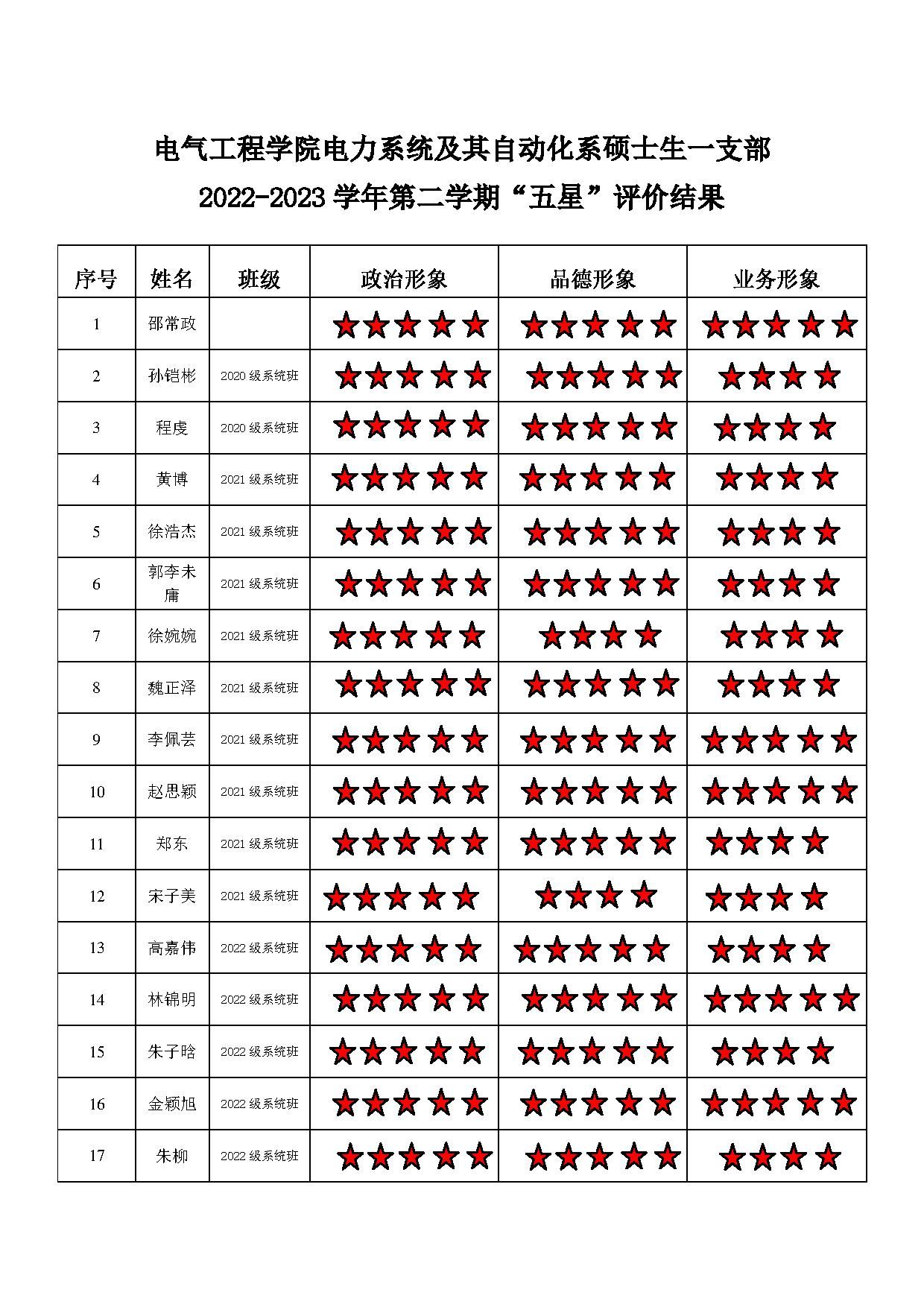 无码av 建筑电气支部 2022-2023学年第二学期“五星”评价结果