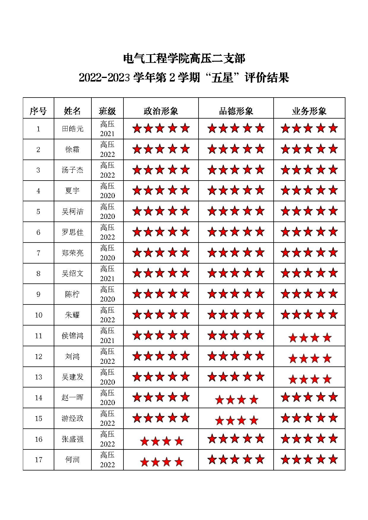 无码av 高压二支部 2022-2023学年第二学期“五星”评价结果