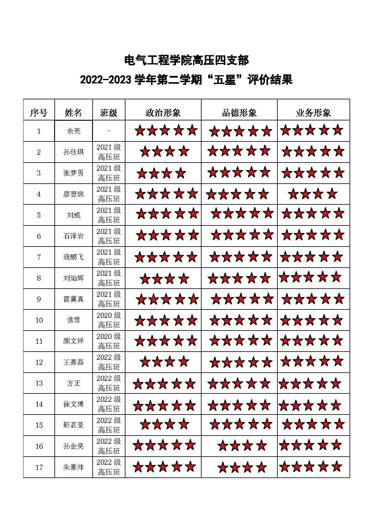 无码av 高压四支部 2022-2023学年第二学期“五星”评价结果