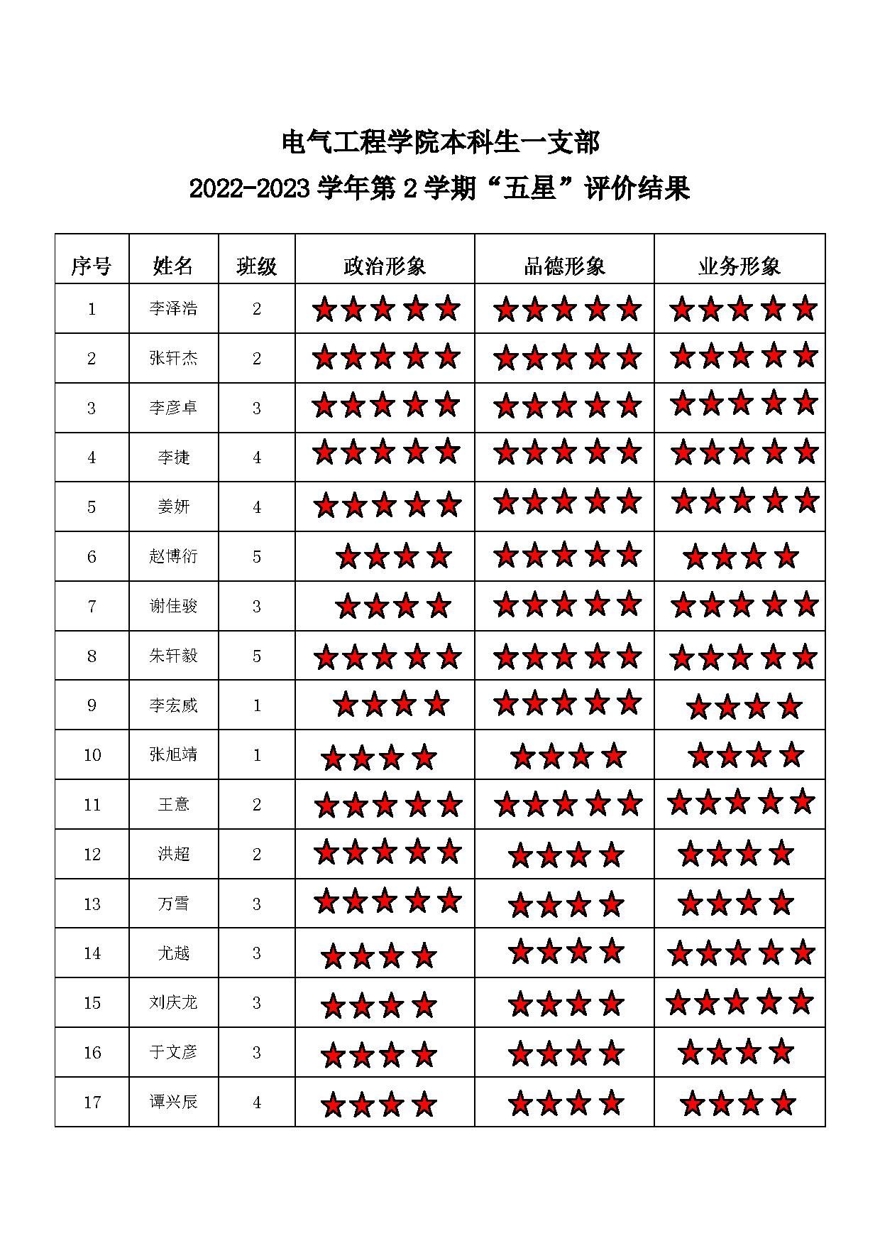 无码av 本科生一支部 2022-2023学年第二学期“五星”评价结果