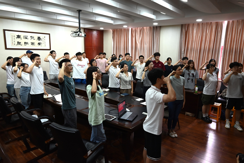 研究生分团委书记段学涛带领各实践团同学们宣誓。