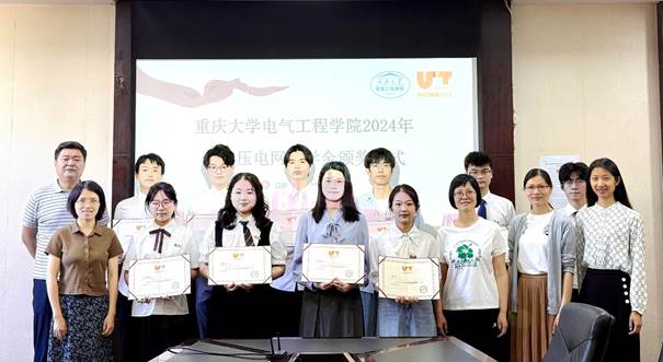党委副书记吴嘉,学生办公室主任罗敏,团委书记喻惠,辅导员陈思思、胡力方,以及2024年度特高压电网奖学金全体获奖学生参加颁奖仪式。