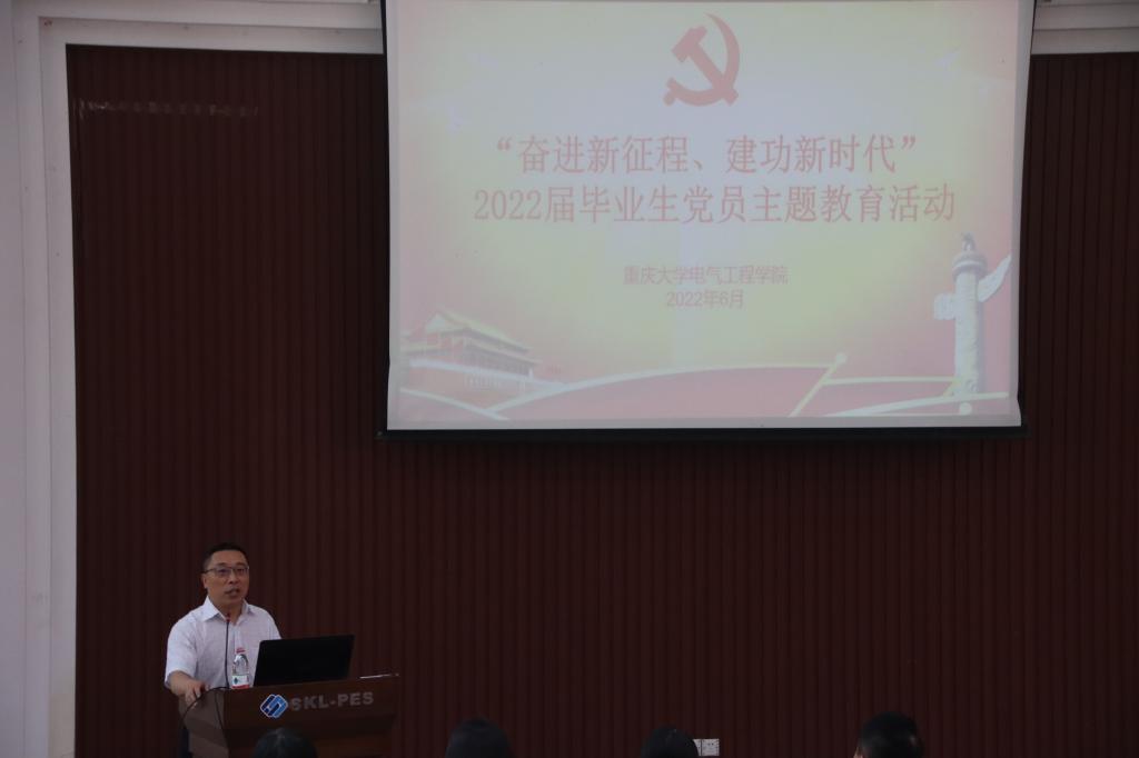 最后,胡建林同志感谢了两位杰出校友的经验分享,并从自身的经历出发,分享了自己的所得所感。他建议毕业生党员要在工作和生活中定好目标、拟好计划、制定详细方案,并要用实际行动为目标而奋斗,同时还要不断分析总结,要眼中有事、心中有责,诚实做人,踏实做事、切勿糊弄,最后对毕业生党员提出了十二点要求并送上了诚挚的祝福。祝福2022届党员同学们在未来的人生道路上秉承重大电气的精神,踔厉奋发,创造属于自己的辉煌!