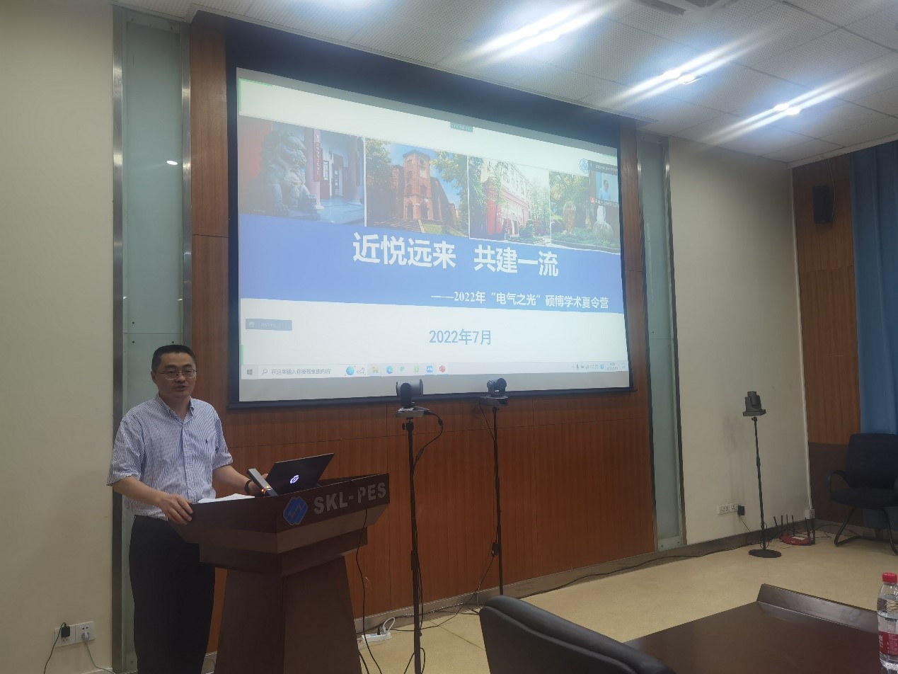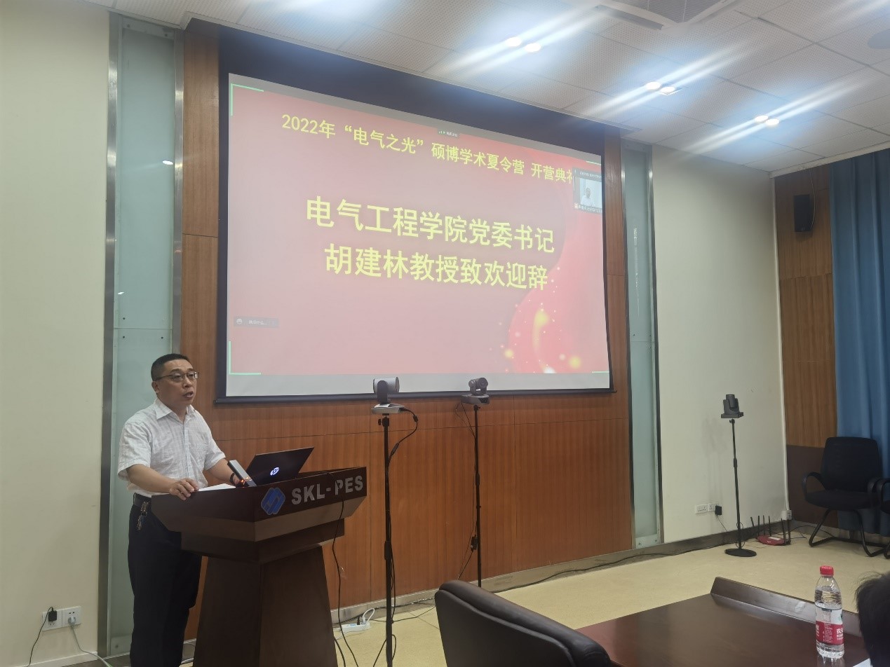 学院党委书记胡建林致欢迎辞,对来自五湖四海的莘莘学子表示热烈欢迎,恭喜大家经过严格筛选入选了“电气之光”硕博学术夏令营,希望营员们通过夏令营能开拓学术视野,激发创新意识,深刻体验感受重大电气深厚的文化底蕴,感知重大电气的人文精神与科研内涵,促进电气工程学科的长远发展。
