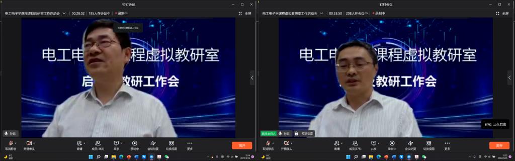在致辞中表示,学校将积极支持各虚拟教研室开展建设工作,同时以虚拟教研室建设为契机,进一步推进现代信息技术与教育教学深度融合,引领校内实体教研室建设提档升级,打造教师教学发展共同体和质量文化,提升教师教学研究意识,充分调动教师教学活力,厚植教师教学成长沃土,全面提升教师教书育人能力。殷切希望电工电子学课程虚拟教研室在实践中探索出一种具有代表性的建设范式,为虚拟教研室建设试点提供借鉴范例。