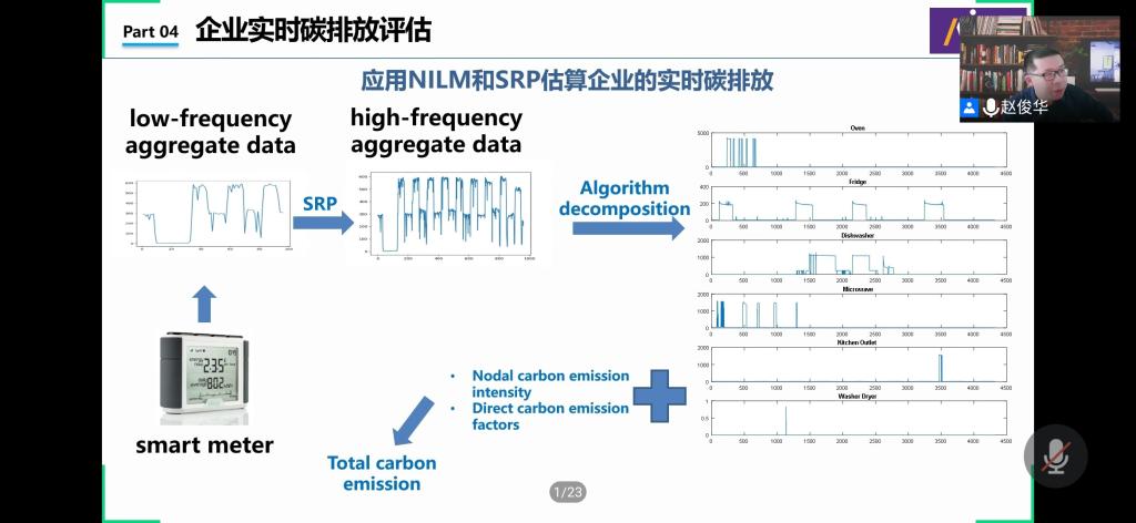 赵俊华教授首先针对我国能源行业的碳排放问题,提出了引入人工智能技术辅助指导经济控制手段的思路。而后,赵教授围绕如何具体利用人工智能技术实现电力系统低碳转型,重点探讨了包括用户行为理解、企业实时排放计量、市场交易行为仿真在内的几个关键问题,并针对每个问题提出了新模型和新思路。此外,赵教授详细地为同学们讲解了其中的算法原理和模型架构,并为同学们具体介绍了这些原理在电力系统中的实际应用,包括在企业实时碳排放评估、数据中心的碳排放优化及低碳实时调度框架、海上风电市场模拟、燃气机组补贴设计、行业景气指数与电力市场和电力金融展望、碳资产管理及碳金融等方面的应用。