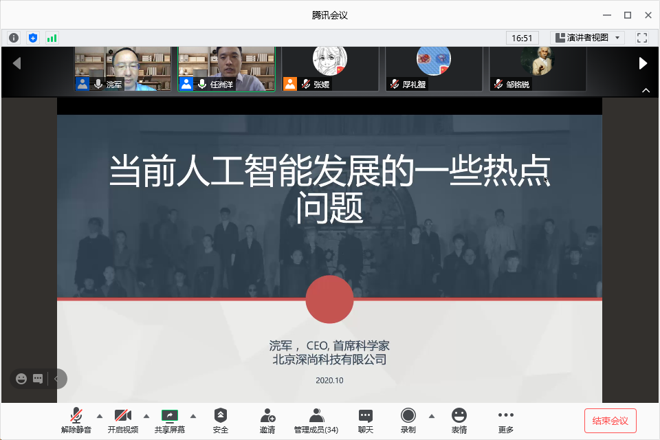 2020年10月31日下午,北京深尚科技有限公司首席科学家和CEO、复旦大学和西安交通大学特聘教授浣军受邀做客“智慧能源云讲堂”,担任第七期的主讲嘉宾,以“当前人工智能研究和应用的一些热点问题”为主题开讲。本期学术讲座由无码av