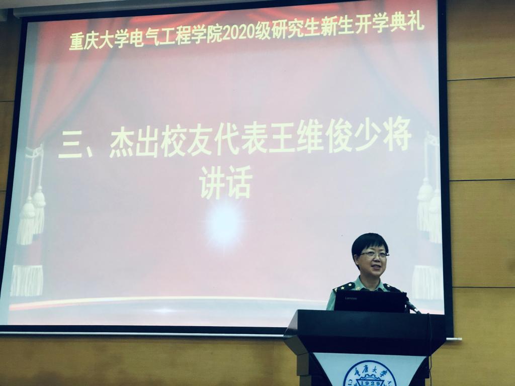 杰出校友代表王维俊少将以自己本、硕、博在重大求学的经历,建议同学们提前做好研究生阶段的人生规划,珍惜来之不易的学习机会。