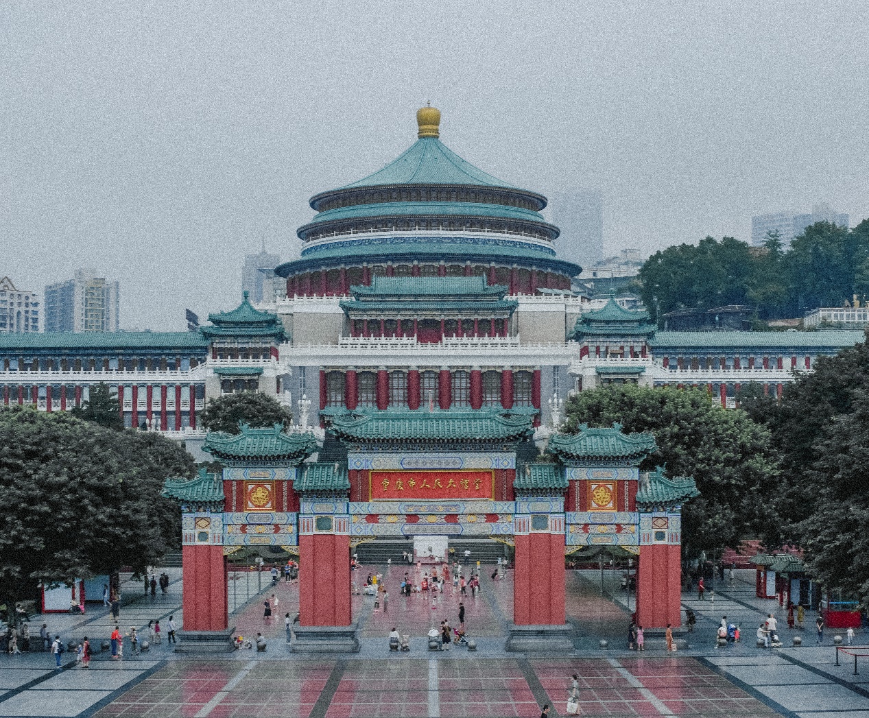 伫立于重庆大礼堂之前,这座拥有中国民族与地域特色的建筑让实践团的成员不禁感叹它的雄伟壮丽与精妙绝伦。漫步于重庆大礼堂,通过浏览大礼堂中的相关信息,实践团成员了解到:重庆人民大礼堂修建于解放初期,由刘伯承、邓小平、贺龙等西南军政委员会主要领导人率领当时西南人民,历时三年才完成的一大历史巨作,是他们为重庆人民留下的宝贵财富。它见证了半个多世纪以来朱德、周恩来等党和国家领导人的亲临视察;见证了历届重庆人大代表、政协委员参政议政的光辉历程。60多年的风雨,重庆人民大礼堂见证并述说着新重庆政治、经济、文化、社会生活,一步一步走向繁荣的历史变迁。
