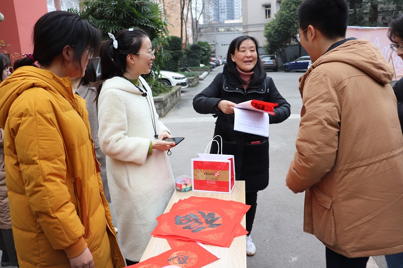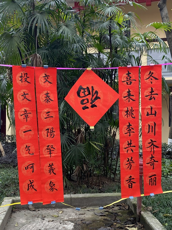 门口开展了主题为“笔墨凝香,子鼠送福”的送春联活动,以写春联、送祝福的形式与师生一起迎接新春佳节。