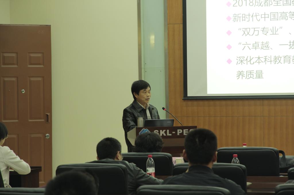侯世英教授和杨帆教授主持。首先,由教育部高等学校创新方法教学指导委员会副主任委员、东南大学胡仁杰教授分享了“如何借助实验中心平台,做好个人发展规划及素质提升”的报告,胡仁杰教授以自己三十多年的教师生涯经历从日常工作、教研活动、学术交流和社会活动等三个方面阐述了教师的自我定位和发展,并详细说明了如何进行实验教学设计、如何规划教学成果,最终在教学工作中实现自我价值和自身发展。同时,胡仁杰教授根据当前的“金课”建设等一系列新时代教学要求,鼓励同行教师做出新的成绩。