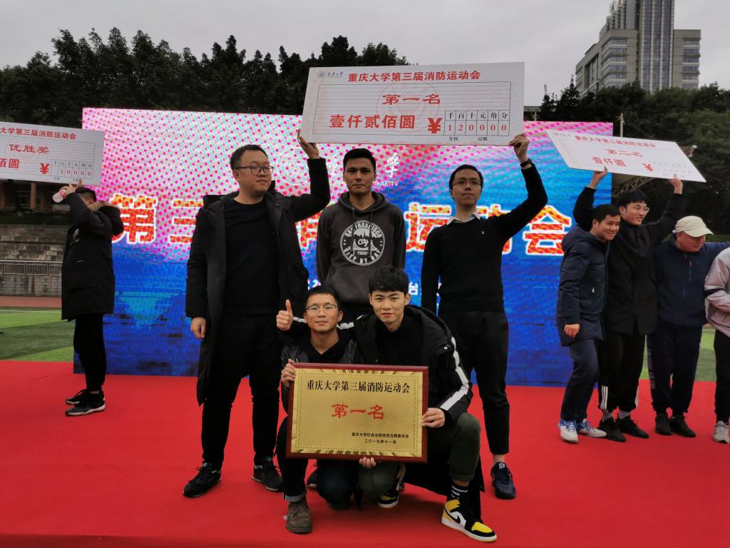 第三届消防运动会在A区思群广场举行,由机关代表、后勤代表、虎溪校区代表、产业代表等以及各学院组队参与了本次团体比赛。比赛分为初赛和决赛两个环节,共设置了五个竞赛项目。我院教师代表董守龙老师、牛涛老师、王超老师以及两位硕士研究生牟迪同学、黄志勇同学共同组成的电气学院代表队,作为成绩最好的八支队伍一路挺进决赛。