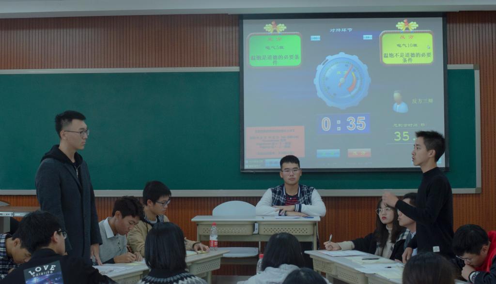 2019级新生辩论赛复赛于虎溪校区第一教学楼打响。经过初赛的激烈比拼,共有六个班级进入复赛。他们分成三组,围绕“温饱是否为道德的必要条件”这一论题两两进行对决,展开了激烈而精彩的辩论。