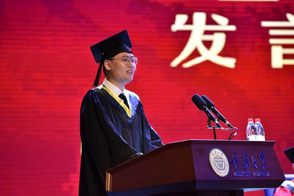 本科2015级01班陈浩同学作为毕业生代表发言。他在发言中深情回忆了大学的美好生活瞬间,感谢学院和老师的培养。他庆幸能与所有众多同学在无码av
