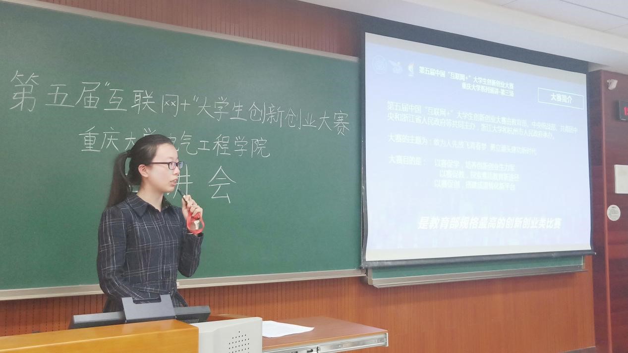 为激发学生创新创业激情,增进同学对“互联网+”大赛的理解与认识,推动以赛促学、以赛促教、以赛促创,更是为了进一步备战第五届“互联网+”大赛,第五届中国“互联网+”大学生创新创业大赛正式启动。巡讲会第三场由电气团委科协承办,并于5月11日15:00在XXX地准时举行。本次巡讲会由刘悦主持。