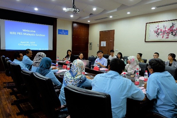 电力与能源可靠性研究中心、IEEE PES 重庆分会的情况。然后,IEEE PES马来西亚协会副主席Hazlie Mokhlis 介绍了IEEE PES马来西亚协会的基本情况,包括主办的IEEE相关活动、协会所获奖项等;IEEE PES马来西亚协会前任主席Mohd Zainal Abidin Ab Kadir简要介绍了马来西亚电力发展现状。双方介绍完毕后,以马来西亚与中国电力系统发展的异同点为切入点,深入讨论了PES分会的发展、电力系统可靠性等相关问题,并就合作研究、学生联合培养等感兴趣的话题进行了交流。