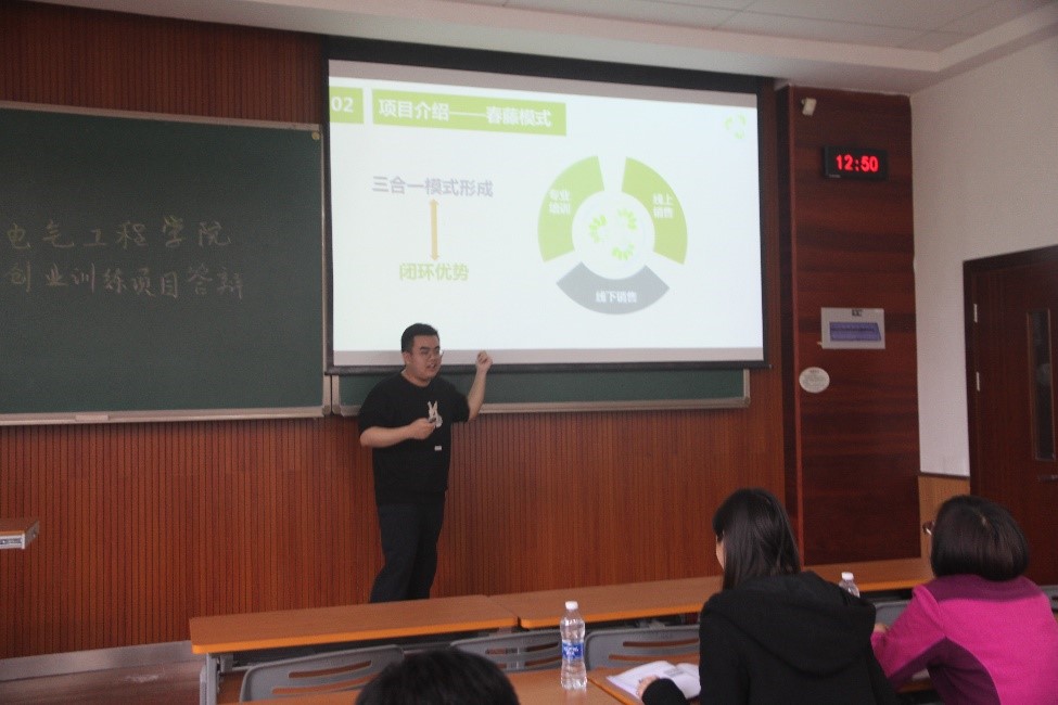 在“基于云平台的电动汽车单板充电方案” 项目成员汇报完项目后,喻惠老师提出项目推广较弱的问题,希望加大对项目的推广力度,罗敏老师提出弄清楚项目内容与目标客户之间的关系,并希望该项目同学可以再完善目标客户的定位。.