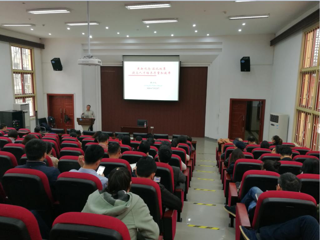 接着,蒋教授做了题为“更新观念 深化改革 提高人才培养质量和效率”的报告,他指出,提高本科生培养质量和水平,全体教师,尤其是专业负责人,必须更新观念,强调人才培养规划和实施的科学性和精细化。报告首先介绍我国高等教育转型发展的基本形势;其次讨论目前存在的影响质量的主要问题;第三,明确本科工程教育聚焦学生解决复杂工程问题能力培养的基本定位;第四是以学生能力培养为目标(以学生发展为中心,产出导向),系统设计培养方案,并站在人才培养系统的高度重新确定课程教学目标和教学内容;第五,以研究型教学引导学生建立探索和分析的意识,学习探索和分析的方法,形成探索和分析的基本能力;第六是要按照面向产出的基本思想,建立完整的持续改进机制,通过面向产出的内部质量监控、毕业生跟踪反馈和社会评价三大机制的建立和运行,不断提高人才培养质量和水平。