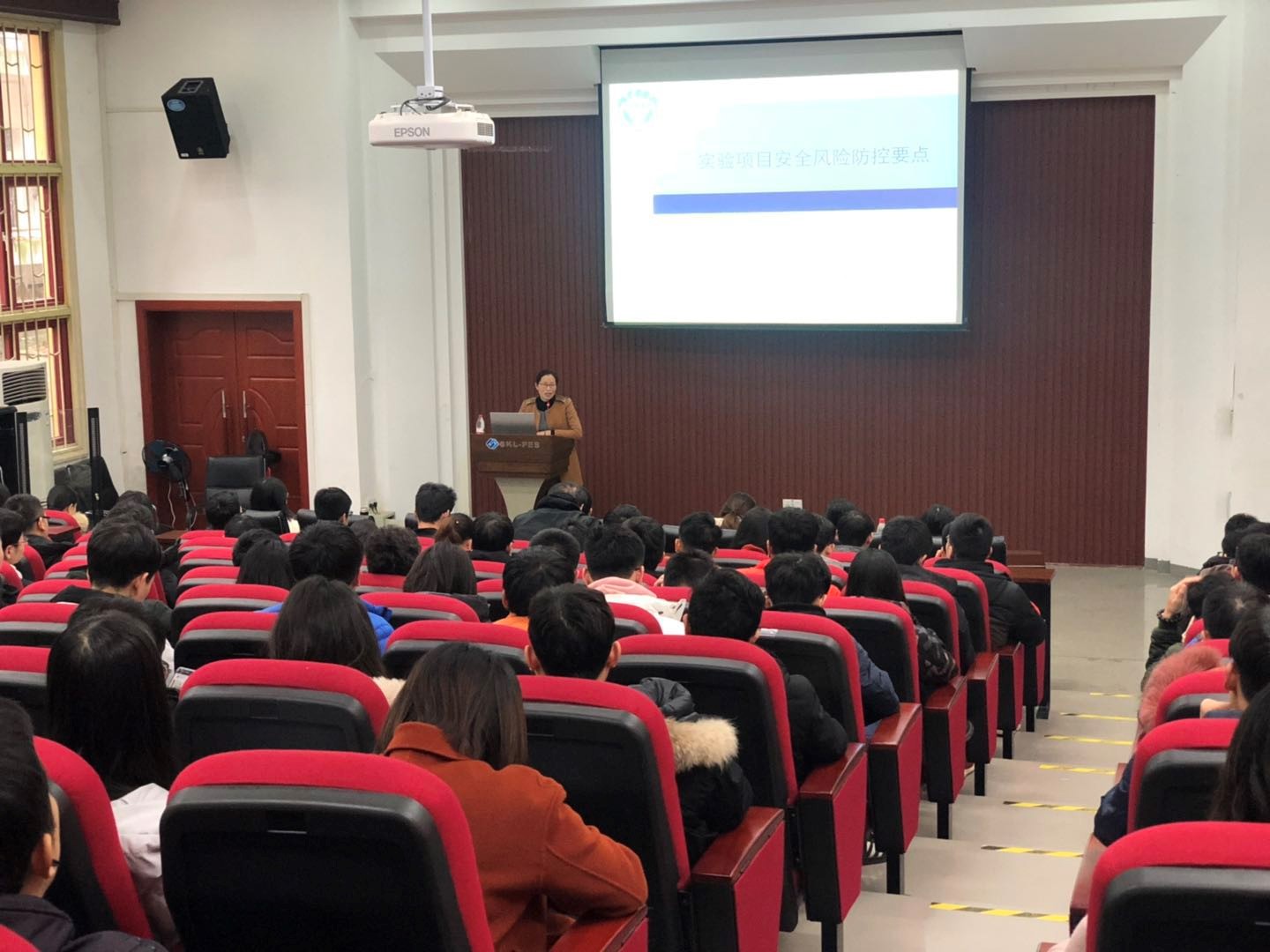 随后,唐老师为我院的全体研究生开展了两场关于《实验室项目安全风险防控要点》的专题讲座,从参与实验工作的主体学生角度出发,重点对实验项目风险评估、风险防控、个人防护、应急措施与救援等方面开展讲解,确保在实验室开展实验项目的学生,能正确认识所开展实验室安全风险,并能有效地进行安全防护,杜绝安全隐患。