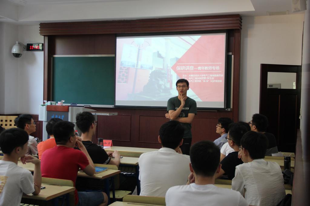 最后,杨老师就自己的研究课题方向给大家进行了介绍,并就自身实际和大家分析了导师对于研究生的看法和要求。在自由提问环节,杨老师对同学们关于研究生做项目、出国交流和电气各方向发展等问题也一一进行了解答,并鼓励大家踏实学习,专心科研,为双一流建设助力加油。