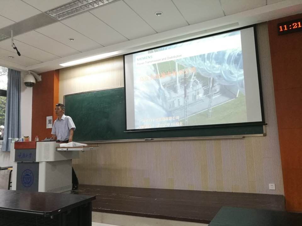26日上午,西门子能源管理集团技术专家吕晓东先生就变压器高压直流输电产品及应用实例的主题做了介绍,吕先生主要介绍了变压器的原理及西门子的主要变压器产品、直流输电的应用及±800KV和±1100KV直流输电的主要项目情况,让同学们了解到变压器与直流输电的工程实际状况,以及西门子的工程运作情况。