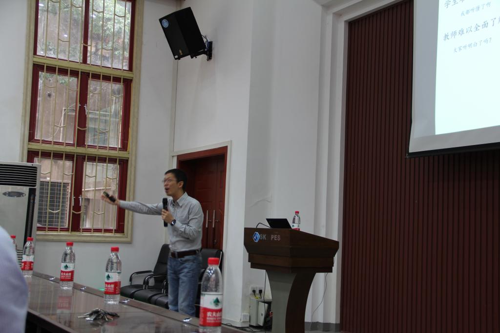 报告会于5月10日上午在A区六教117教室举行,学校教师发展中心副主任付红桥、学院书记周林、以及分管教学的副院长杨帆、各系正副主任、《电路原理》相近课程主讲老师、以及学校新进教师近100人参加了此次报告会。