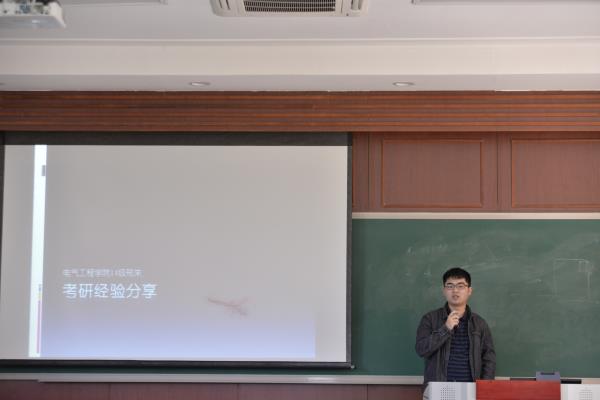 的邢来同学和考研到清华大学的邬超同学介绍了自己考研的经过,并指出对于电气学子来说数学和电路原理的拉分科目,还要坚持不懈日复一日的学习。