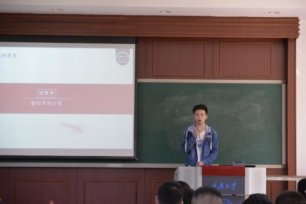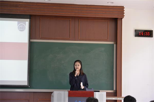 紧接着是签约了深瑞继保的汪铁霖同学,他不仅介绍了签约私企的流程和注意事项,而且就自己在担任了学院就业委员期间所了解到的各种就业情况进行了详细描述。