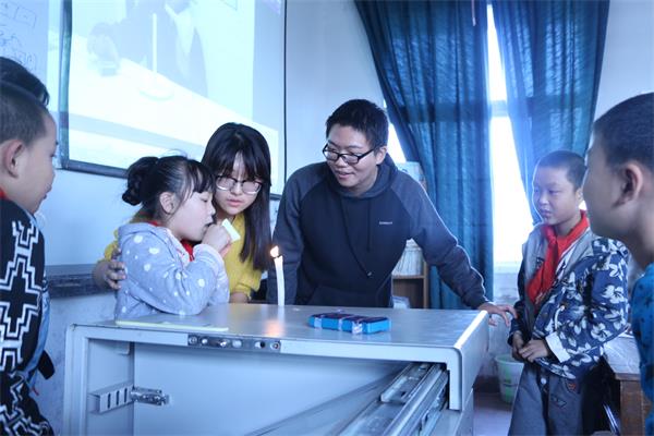 的4名志愿者与电气青协干事一起前往璧山区保家小学开展科技支教活动。这是本学期的第四次支教课程,志愿者们着重以小实验为引,生动讲解了电荷和气压的有关知识,解释了生活中现象,同学们在欢乐中也收获了很多。
