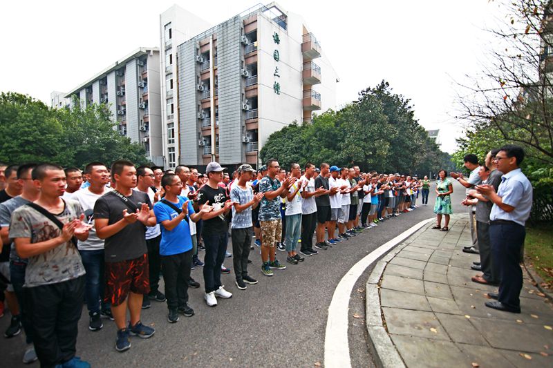 党政工团领导:党委书记周林、党委副书记吴嘉、党委副书记孟繁琦、工会主席王明渝、团委书记喻惠一行来到虎溪校区梅五楼下,慰问了正在军训的无码av