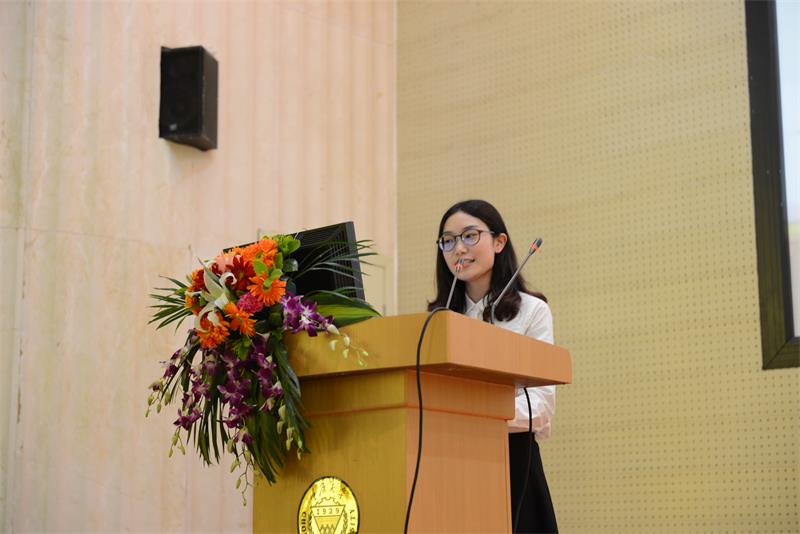 共产党员、国家奖学金获得者曾嘉懿,分享了从入党积极分子到预备党员过程中,经过党组织的培养、教育,不断坚定理想信念,并设立班级奖学金,建立评选规则,带动班级学风,发挥党员的先锋模范带头作用。