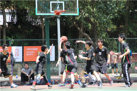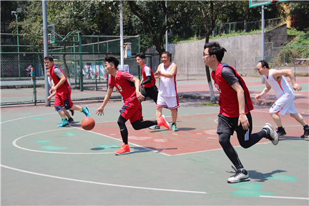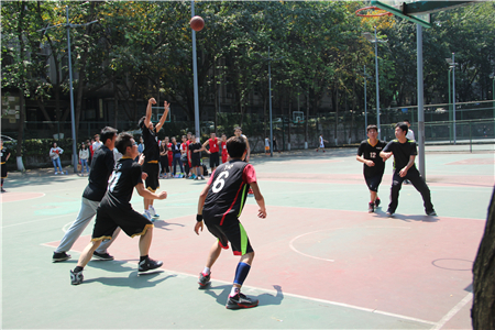 两场比赛分别是研一高压队VS研二新技术队、教师队VS研一联合队。两场比赛同时进行,随着裁判员的哨响,比赛正式拉开序幕。场上,队员们敏捷地传球,奋力地争抢篮板,你争我夺,你攻我守,好不精彩。场下,观众们不断为自己喜欢的球队加油鼓劲,助威呐喊。