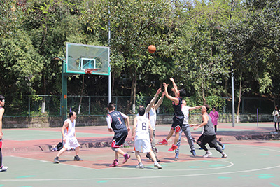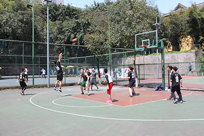 三场比赛分别是研三新技术队VS研三联合队、研二高压队VS教师队、研一高压队VS博士队。三场精彩的比赛同时进行,随着裁判抛出篮球,双方抢球,比赛正式开始,各队队员们迅速进入状态,在运动场上尽情挥洒汗水,你争我抢,好不激烈,快速进攻,篮板球抢夺,三分球命中,精准罚篮,各种扣人心弦的进球使得篮球场上不时爆发出阵阵呐喊声,将球场的氛围推向高潮。