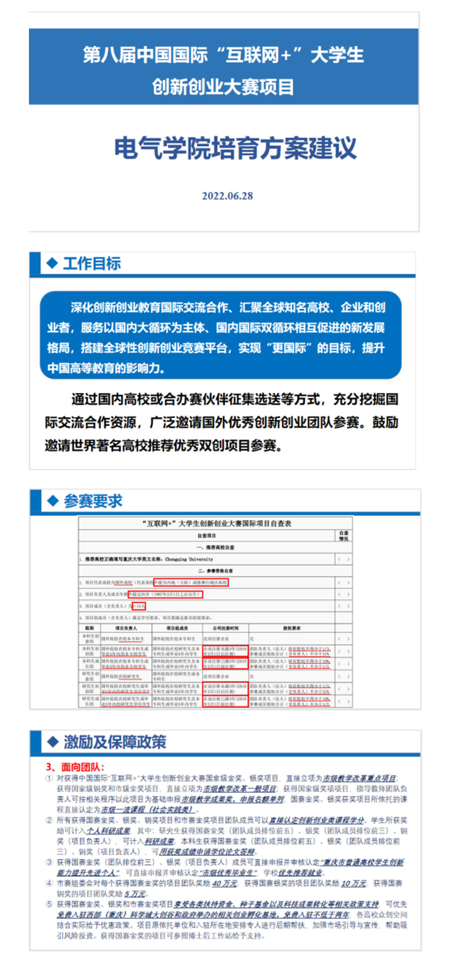 第八届中国国际“互联网+”大学生创新创业大赛电气学院培育方案建议会