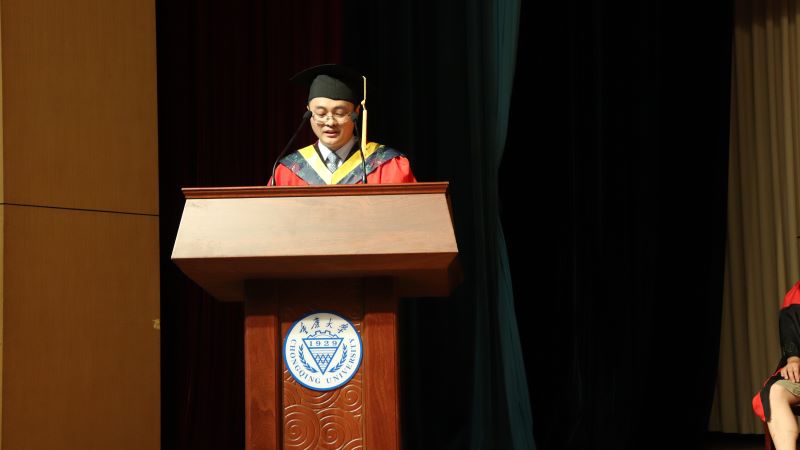 本科2019级毕业生崔恩铭同学作为毕业学生代表发言。他代表毕业生向培养教育同学们的师长,关心爱护同学们的父母致以崇高敬意并表示衷心感谢。