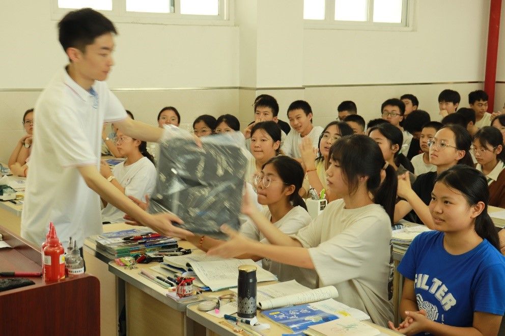 最后进行的是答疑解惑环节,同学们积极参与,展现出强烈的求知欲以及对大学生活的憧憬。志愿报考、高中学习时间安排以及未来规划等是同学们最关心的问题,实践队员们站在同学们的角度,根据自身的经验和知识,耐心地解答。对于积极参与的同学,实践队送上了精美的纪念品,并祝愿大家都能考上自己心仪的大学。