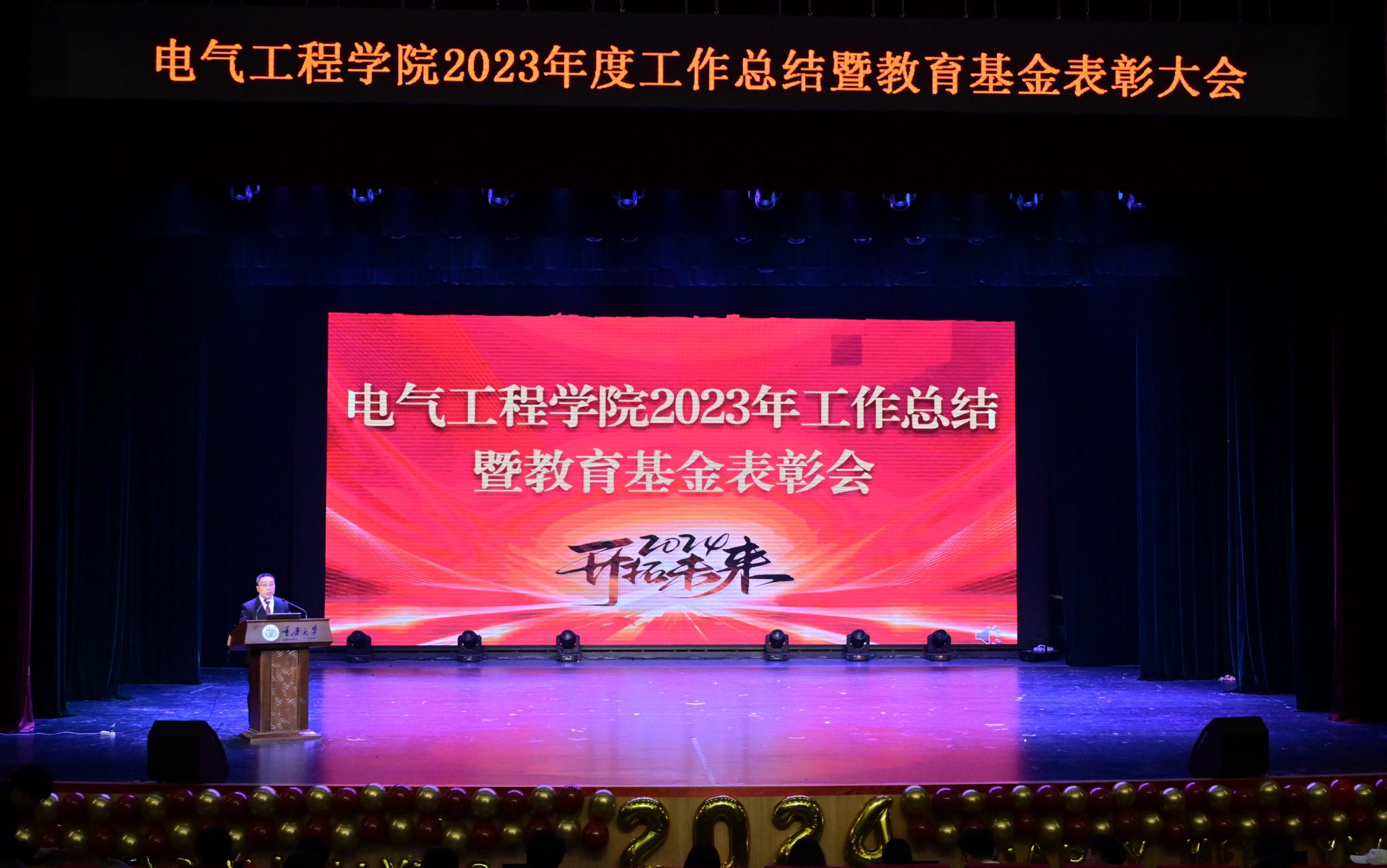 2023年度工作总结暨教育基金表彰大会在B区科学会堂隆重举行。学院师生欢聚一堂,回望浓墨重彩的2023年,展望充满光荣和梦想的2024年。大会由学院党委书记胡建林主持。