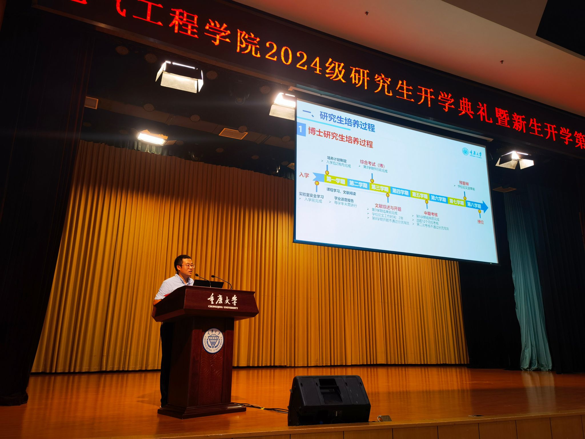 典礼结束后,国家自然科学基金创新研究群体带头人、国家重点研发计划项目首席科学家、国家级教学成果一等奖获得者廖瑞金教授以“追求真理、勇于创新——感悟周光召先生的科学精神”为题,为2024级全体研究生上了“开学第一课”。他跟大家分享了“两弹一星”元勋、中国科学院资深院士周光召先生平凡而伟大的一生,让大家在周光召先生的人生经历中感受“追求真理、勇于创新”的科学家精神,勉励大家树立远大的理想和目标,相信自己,敢于突破,并持之以恒地努力实现理想目标。