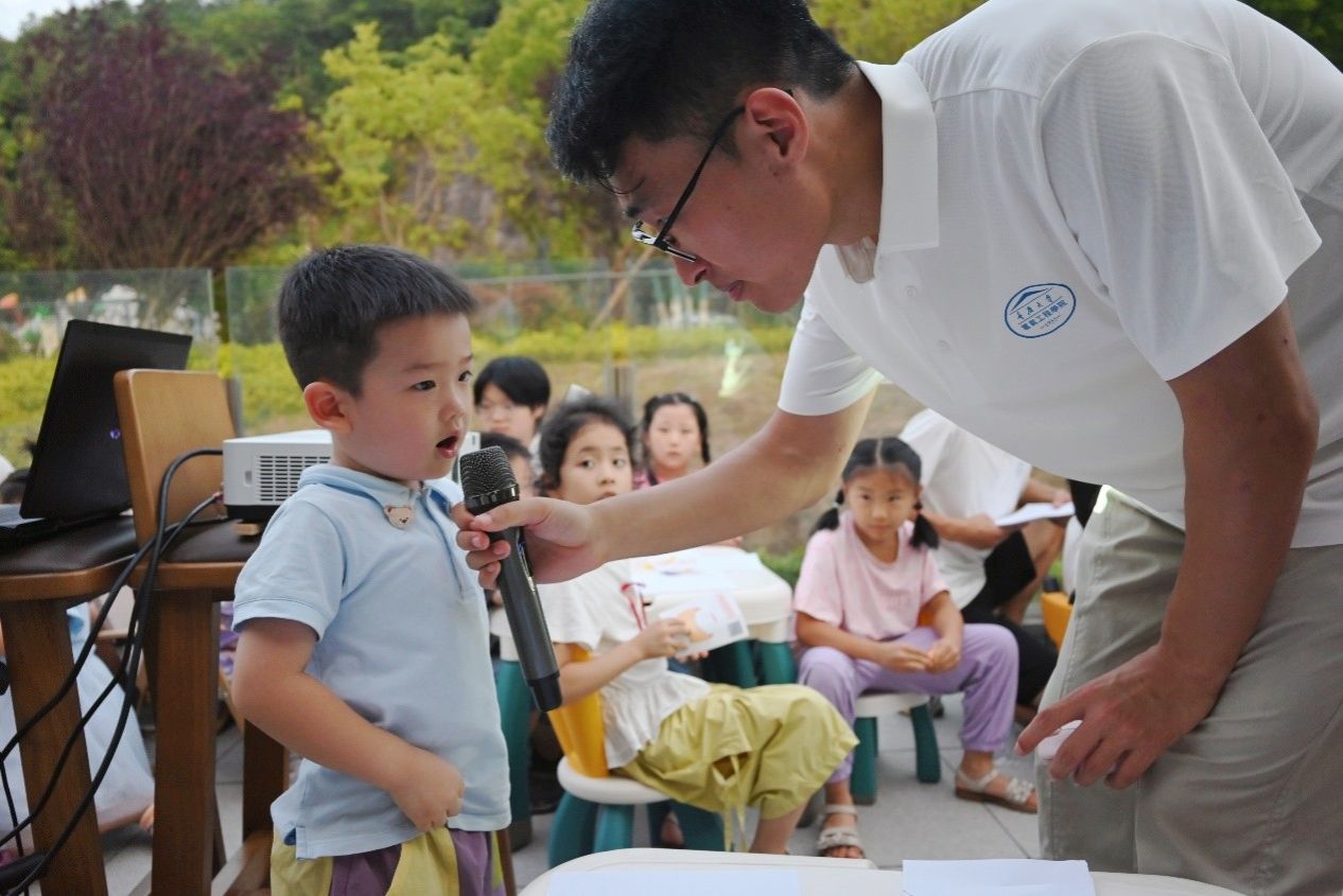 分享环节里,孩子们争先恐后地举手。“我知道了淀粉和碘酒是好朋友,遇到一起会变颜色!”“原来水这么珍贵,以后我要节约用水。”一个刚上幼儿园的小朋友说:“谢谢哥哥姐姐,我现在能分清哪些水可以喝了,还学会了写密信给爸爸妈妈。”实践团成员们认真倾听,不时为孩子们的分享鼓掌。